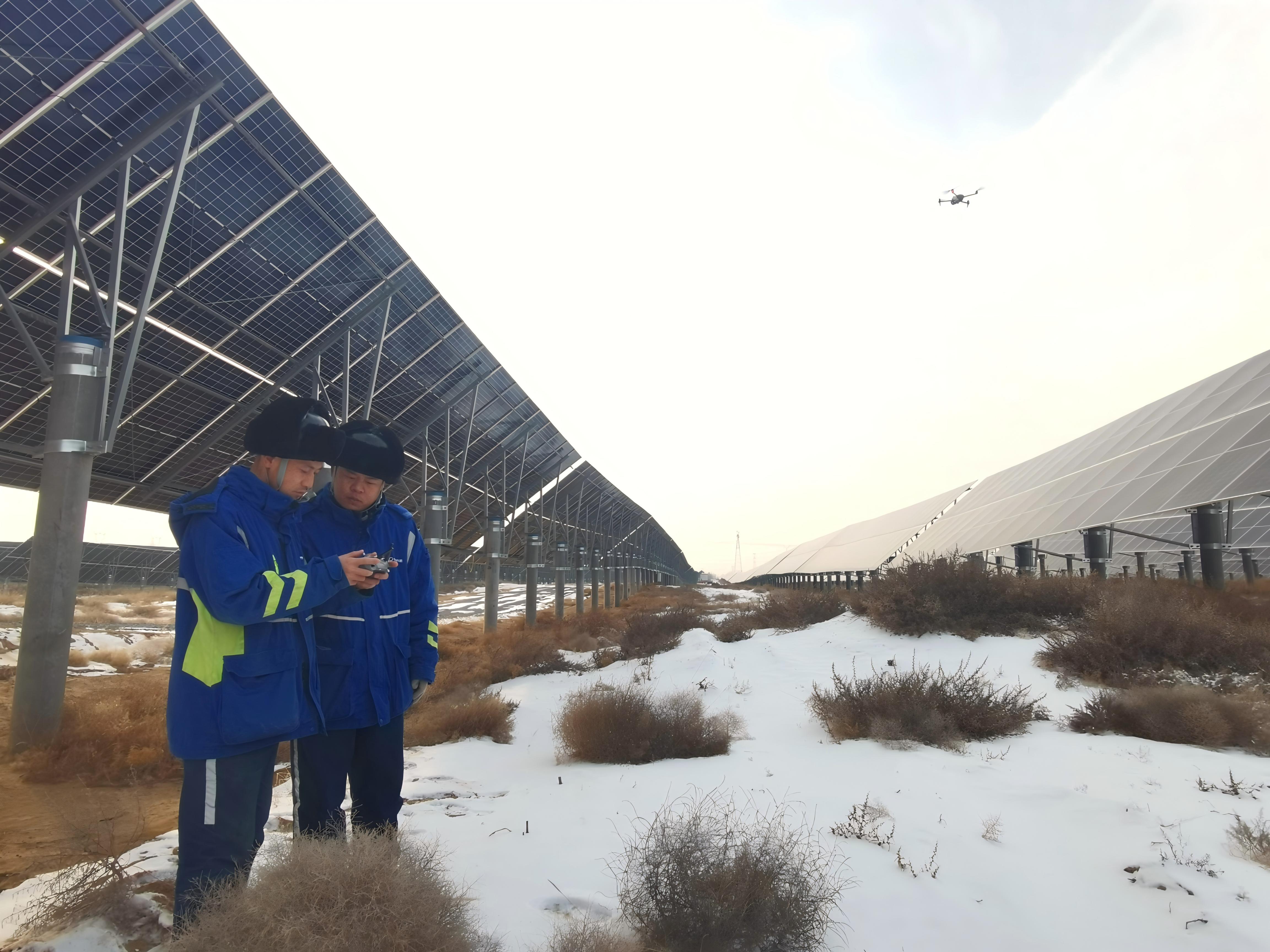 太陽(yáng)能達(dá)拉特旗50萬(wàn)千瓦防沙治沙光伏一體化項(xiàng)目運(yùn)維人員 正在用無(wú)人機(jī)巡檢光伏組件 科技賦能,穩(wěn)定供應(yīng)保安全。面對(duì)冬季低溫、雨雪等挑戰(zhàn),公司強(qiáng)化技術(shù)預(yù)案與設(shè)備管理。新疆區(qū)充分發(fā)揮配套儲(chǔ)能系統(tǒng)“調(diào)節(jié)器”作用,平抑光伏出力波動(dòng),確保高負(fù)荷時(shí)段電力穩(wěn)定輸出。西北區(qū)、西中區(qū)針對(duì)極寒天氣制定專(zhuān)項(xiàng)預(yù)案,加強(qiáng)對(duì)箱變、電纜接頭、儲(chǔ)能系統(tǒng)等關(guān)鍵設(shè)備的防凍檢查與參數(shù)監(jiān)測(cè),開(kāi)展預(yù)防性消缺,筑牢設(shè)備安全運(yùn)行根基。華東區(qū)運(yùn)用水面清洗機(jī)器人等自動(dòng)化裝備,提升組件清潔效率,并建立完善應(yīng)急預(yù)警機(jī)制,確保極端天氣下電力供應(yīng)安全可靠。