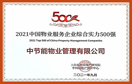 中節能實業下屬物業公司榮獲2021中國物業服務企業綜合實力500強 |