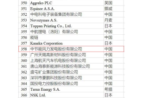 風電公司入圍2021年全球新能源企業500強企業榜單