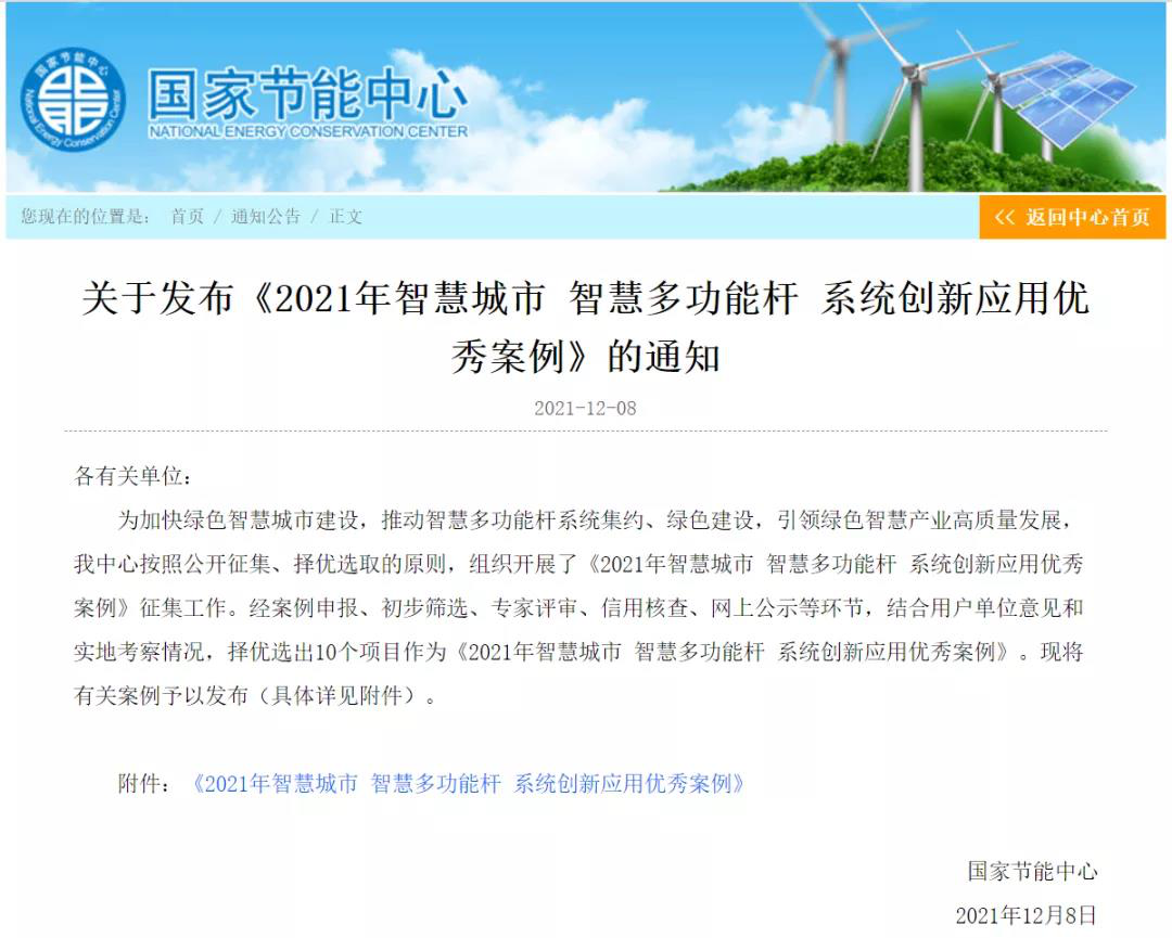 國家節能中心為推動綠色智慧城市建設,規范城市智能多功能燈桿系統的總體技術要求,提供智能多功能燈桿系統的規劃、設計、建設與運維技術參考,公開征集《智慧城市智能多功能燈桿系統創新應用優秀案例》。最終入選的案例需集中滿足了兩個條件:緊緊圍繞污染防治攻堅戰、藍天保衛戰等國家發展戰略以及推動解決了技能技術推廣難的問題,并且取得了顯著的經濟、社會和環境效益,能助力我國節能環保事業開辟新途徑。