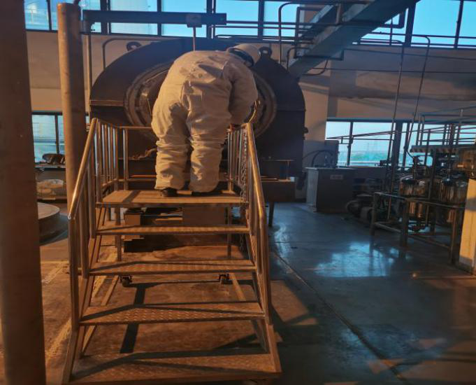 2020年8月26日,十二號車間的二段焙燒爐檢修,為了掌握爐內準確的情況,制定最優檢修方案,身為共產黨員、車間主管的孫寶林決定親自進爐檢查。焙燒爐內狹長,高度僅八十五公分左右,寬度約六七十公分,一根縱軸貫穿整個爐膛,縱軸每隔一段距離就鑄有像風扇葉一樣的三角刮片,爐壁上方也分布著大大小小不規則的破碎刀具,內部結構極其復雜,這對于身高近一米八,體重七十五公斤的孫寶林來說絕非易事,在爐膛里面既不能直立也不能躬腰,在近乎密閉的環境中,光是從爐尾爬到爐頭這樣的貫穿行程,如果不拿出點大型節目里面那種闖關的勁頭兒,一般人也是無論如何都堅持不下來的,更何況還要從容鎮定一氣呵成地同時完成檢查、標記、記錄的整個排查過程。