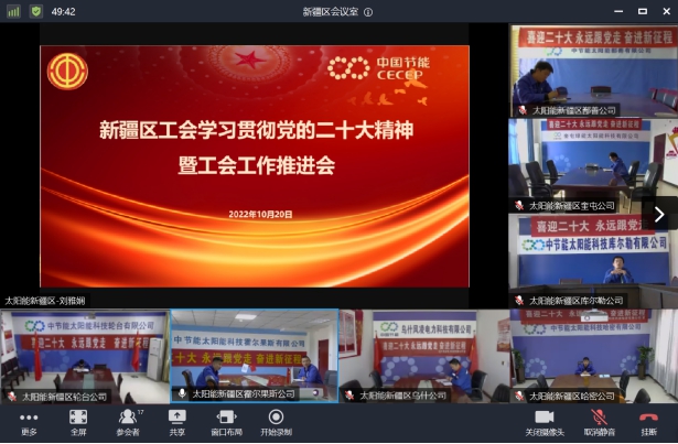 太陽能西中區、新疆區為深入學習宣傳貫徹黨的二十大精神,近日各基層工會召開學習貫徹黨的二十大精神暨工會工作推進會,集中學習黨的二十大報告,就學習貫徹好黨的二十大精神提出工作要求,并對下一階段工會工作進行安排部署廣大干部職工中掀起學習討論熱潮各級基層工會主席、委員參加會議。