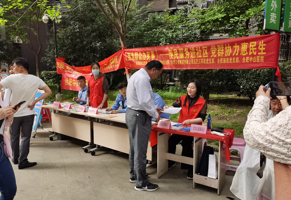 黨史學習教育開展以來,重慶公司各級黨組織堅持學黨史,見行動,辦實事,持續開展為民便民服務實踐活動。2021年5月7日,重慶公司所屬合肥施凱黨支部與荻港路社區、大通路派出所、合肥中山醫院黨建攜手開展“便民服務進社區黨群協力惠民生 我為群眾辦實事”活動。