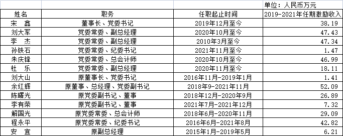 中國節能環保集團有限公司企業負責人2019-2021年任期激勵收入情況